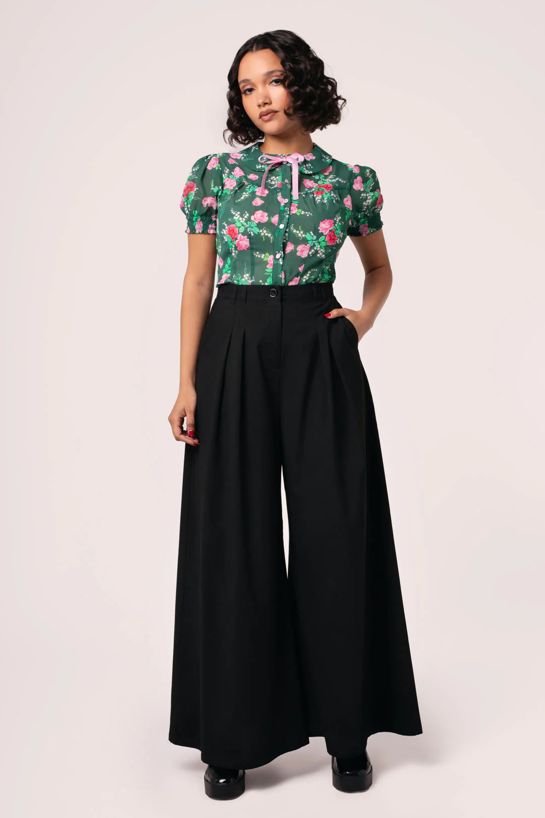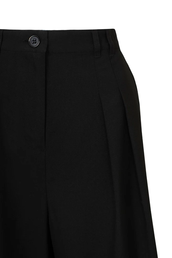Affichez un style affirmé avec le pantalon Simone. Ce pantalon à taille haute et à jambes très larges offre confort et style à chaque mouvement. Son tissu ajusté apporte une touche chic à votre garde-robe de tous les jours. Le devant est orné de 4 plis soignés qui créent du volume et de l’effet. Enfilez un chemisier pour un look preppy et vintage qui convient à toutes les occasions.